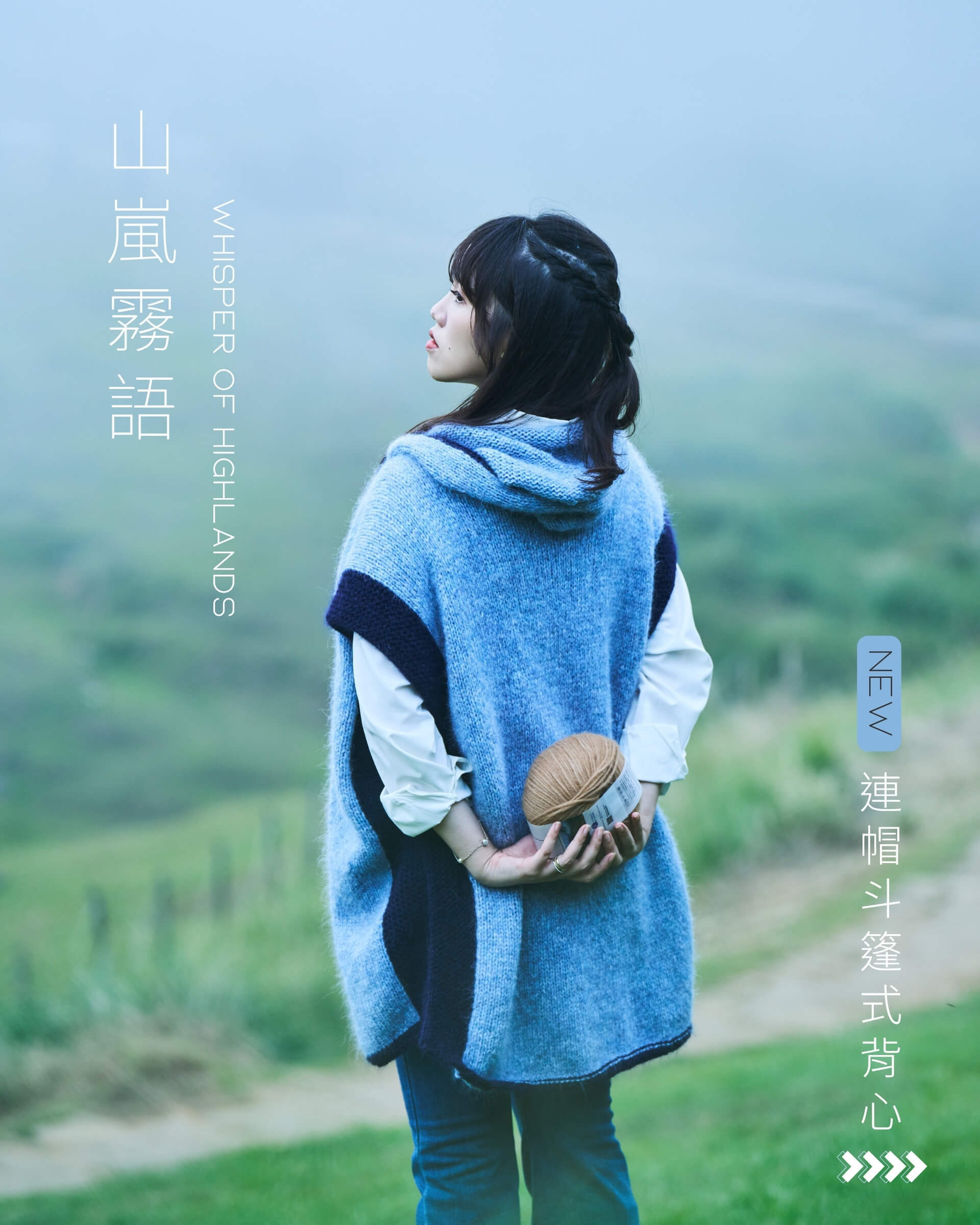 isk-036 山嵐霧語|棒針連帽斗篷式背心材料包,5顆線材+教學影片!