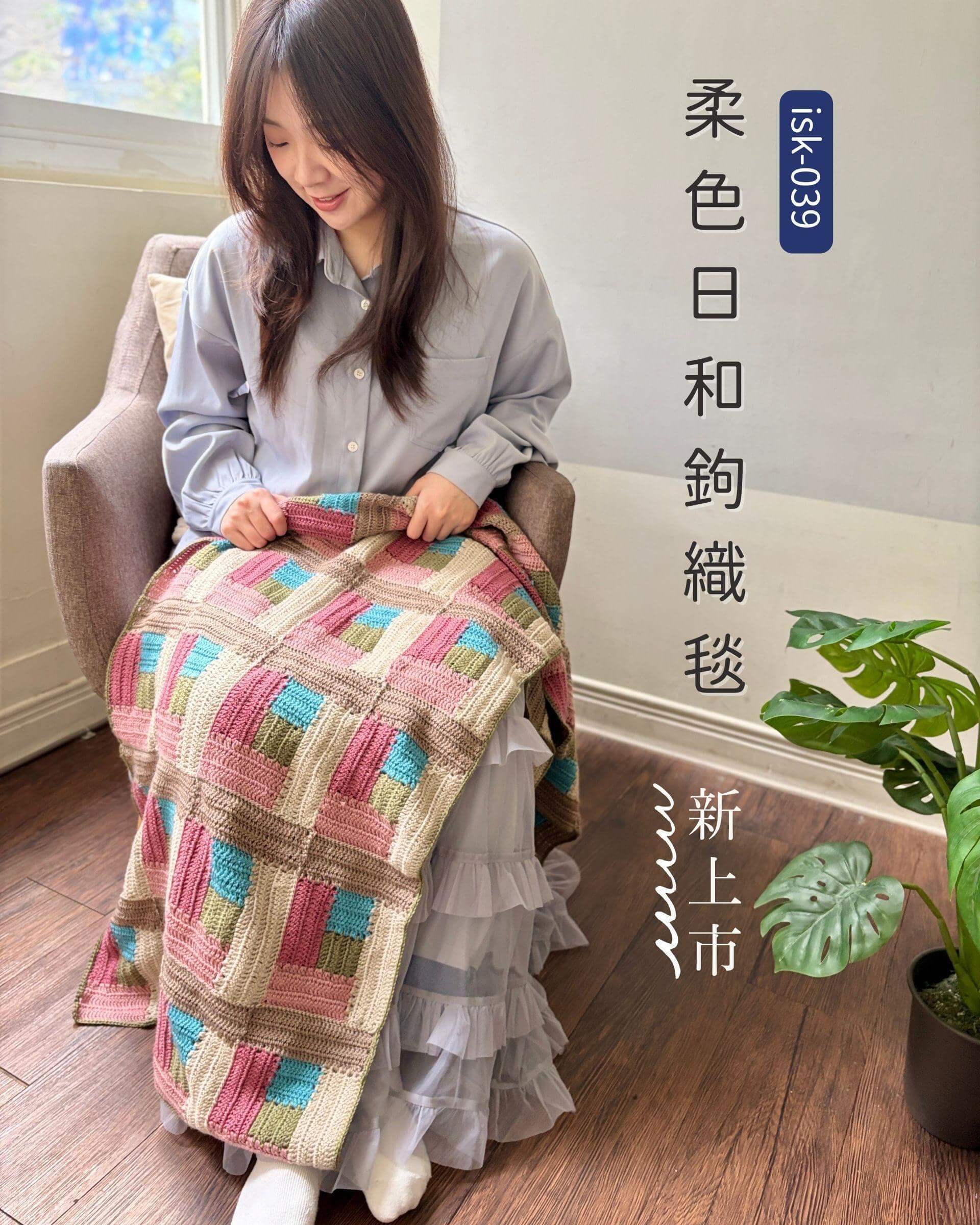 即將絕版!isk-021,「我今年第一條秋冬鉤針圍巾」材料包+3顆線材+中文織圖+教學影片