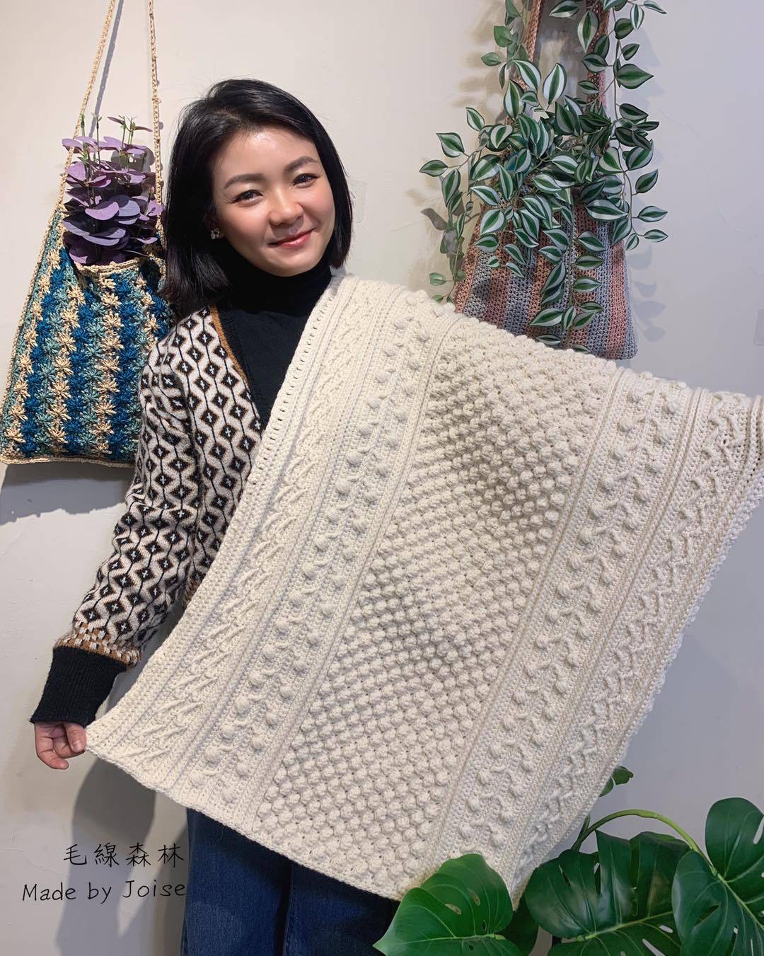 - 🧶每個圖騰看似困難,但跟著老師的教學影片,你也可以織完👍(至少需會長針)