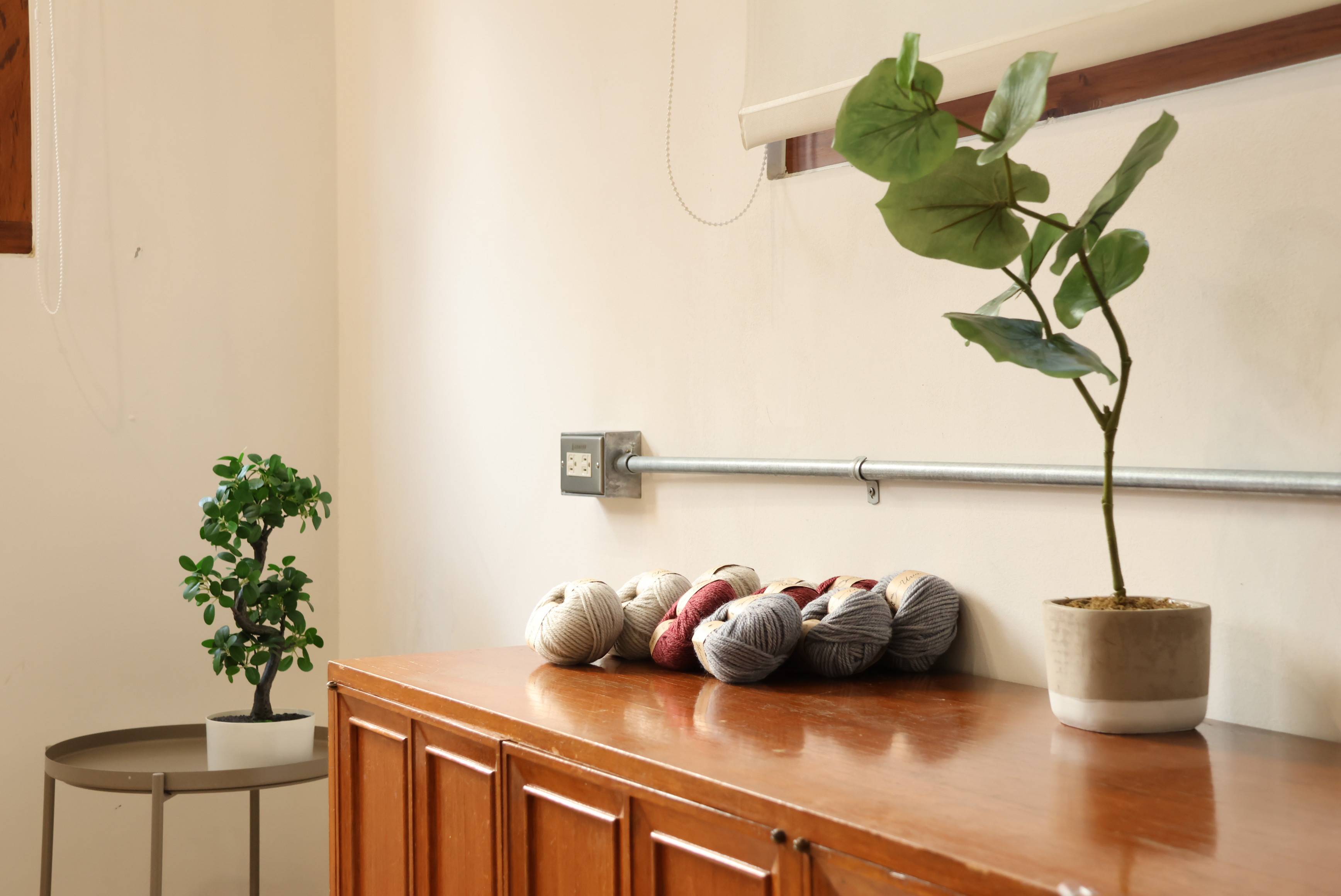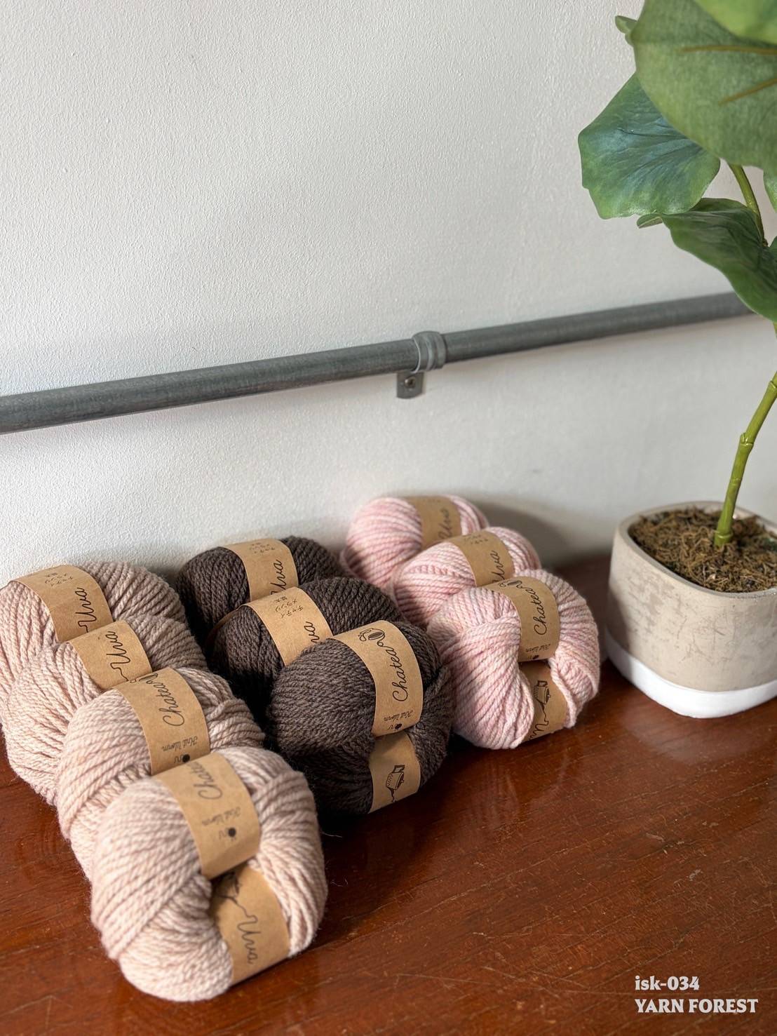 採用軟硬適中的日本品牌線材,百分之40羊毛、百分之60的人造纖維,兼具挺度和柔軟度的質感。尤其顏色帶些微噴染點綴感,讓作品的細緻度更有獨特的加分特色。
