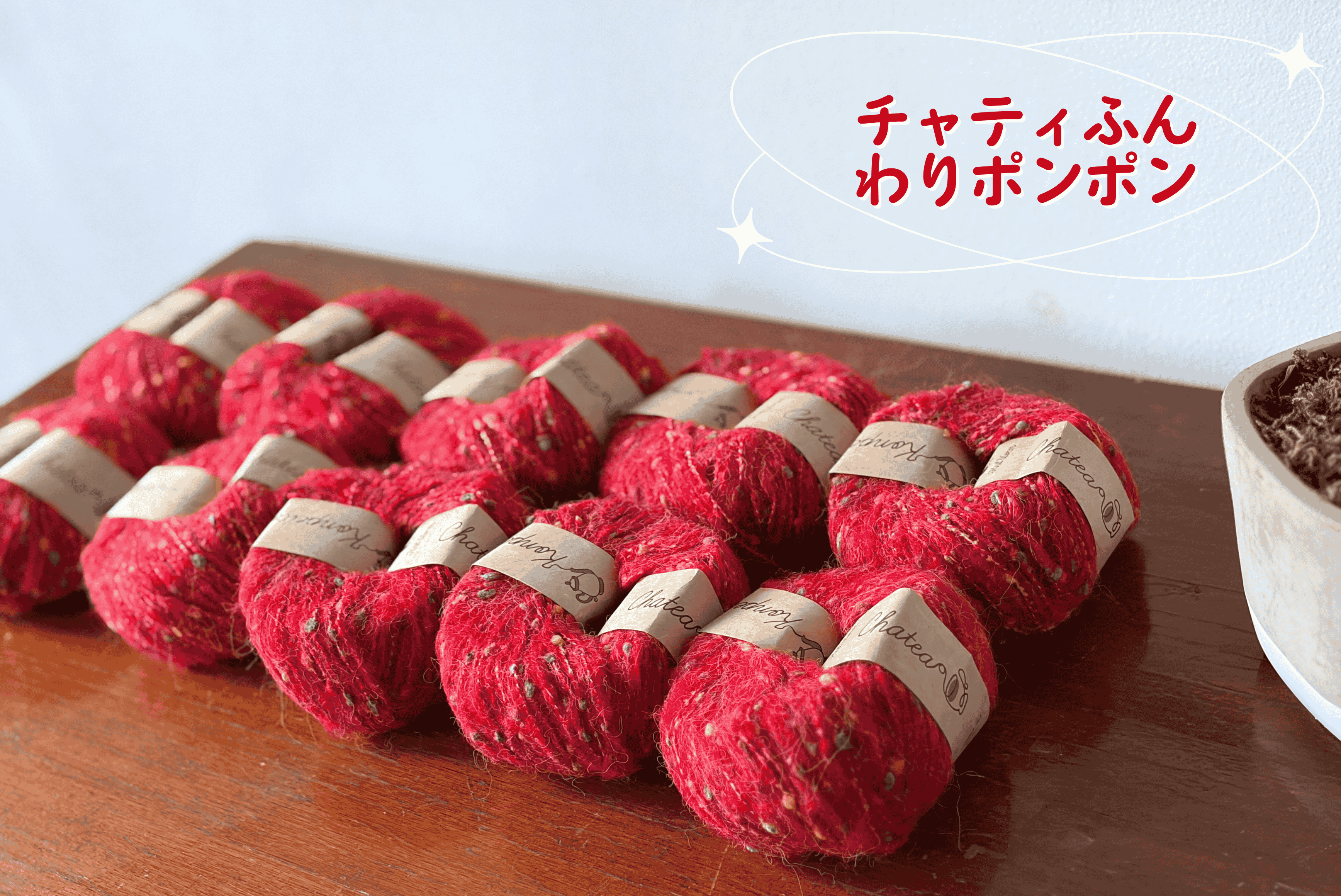 ✦ 線材:來自 Itolab 的 Knitworm chatea 系列,這款 「Chatty 柔軟絨球毛線」 最大特色是線身上點綴著繽紛小絨球,織起來立體又有層次感,成品充滿活潑氣息。