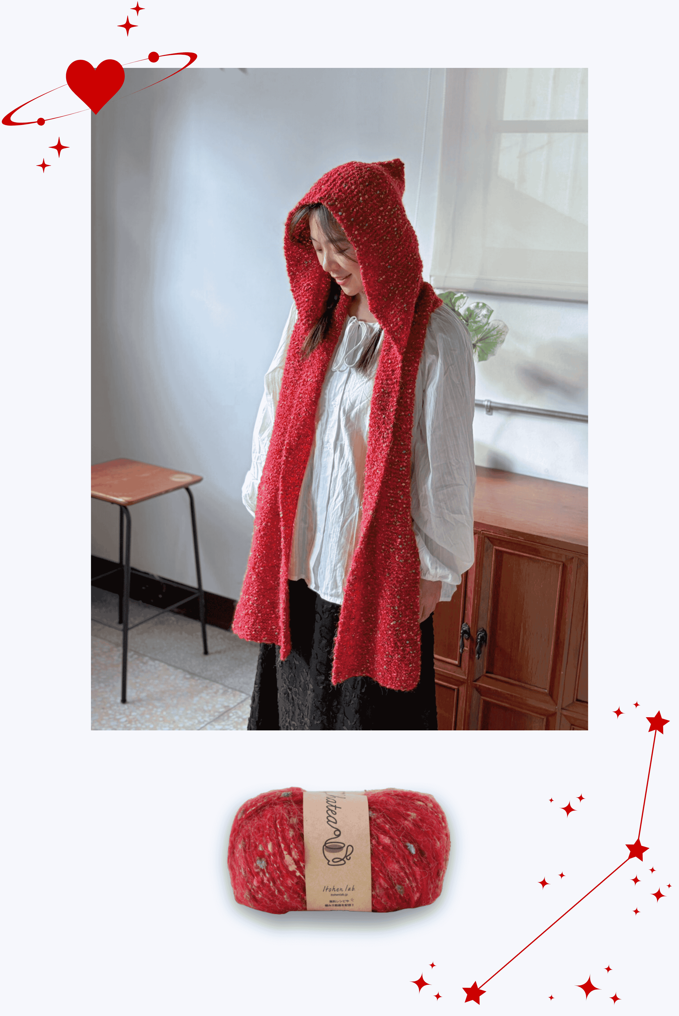 isk-037,小紅帽|棒針連帽圍巾 材料包+教學影片