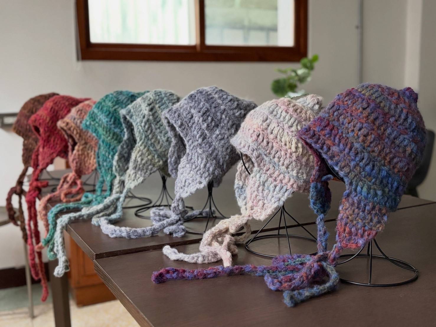 帶點慵懶波西米亞風的蓬鬆毛線飛行帽!
