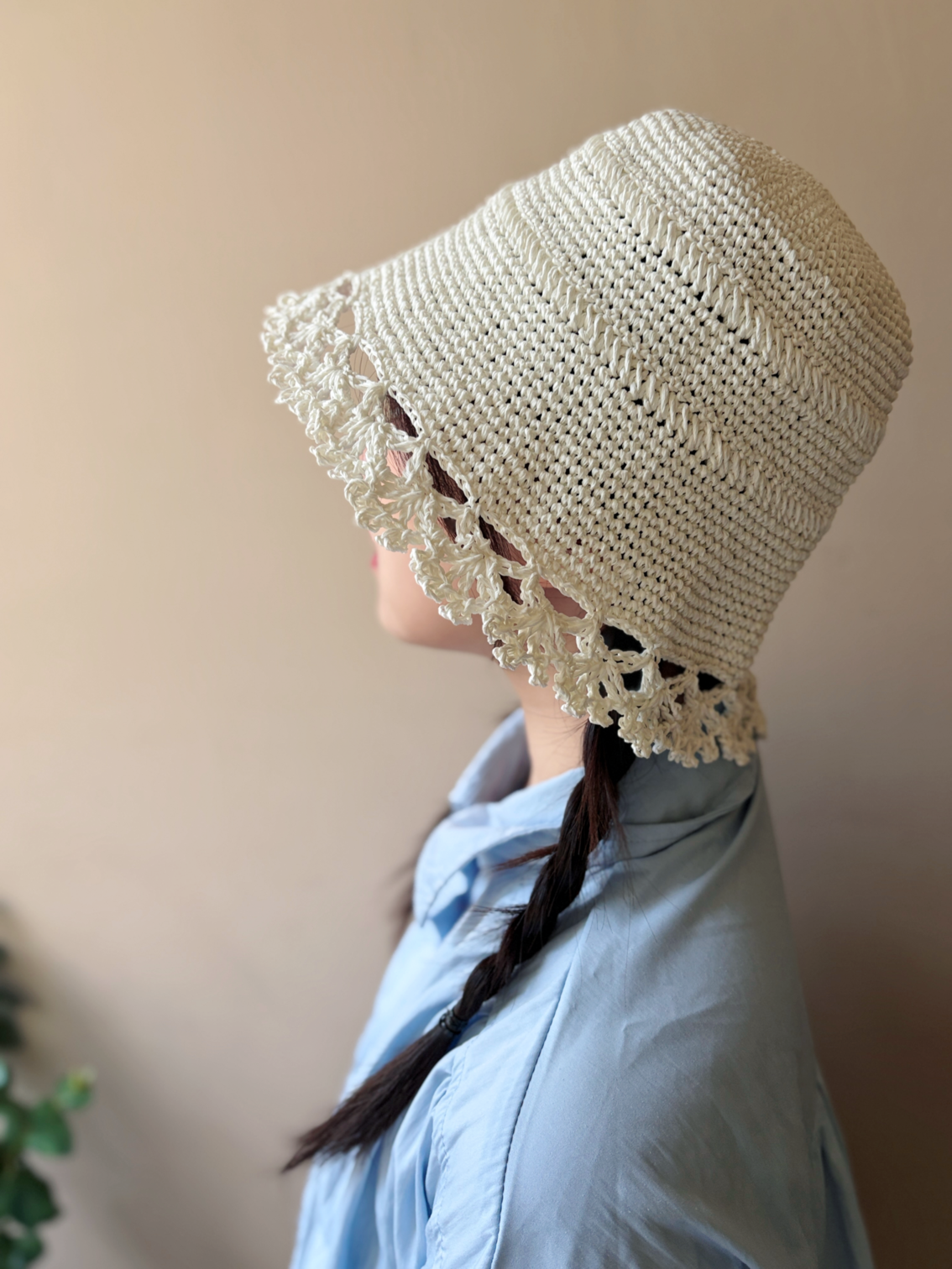帽簷蕾絲設計:示範波浪(Scallop)蕾絲邊的編織方式,讓帽子更有造型。