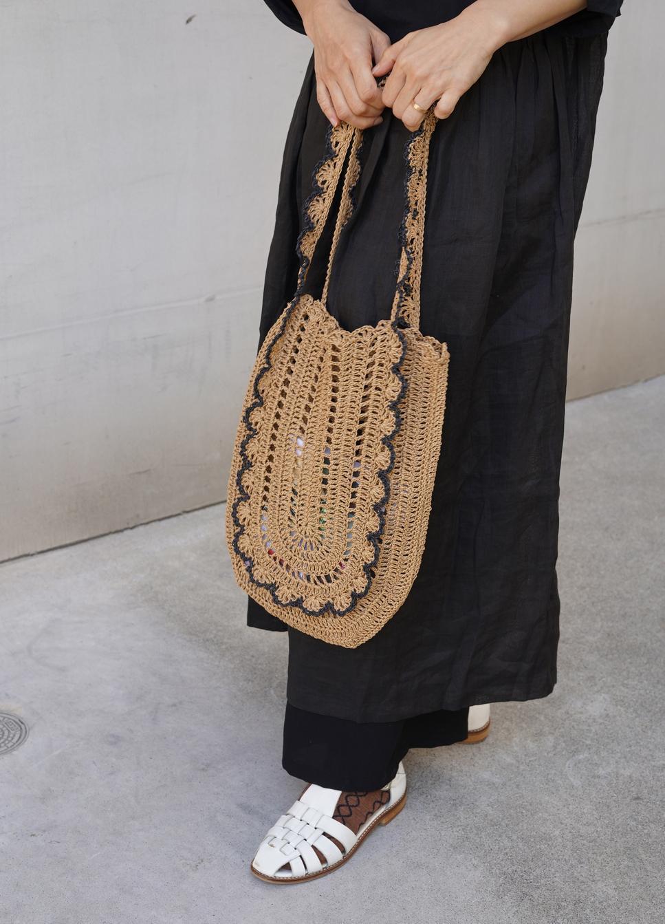 包包的設計亮點是從提把一路編織延伸到包身的花環編裝飾。