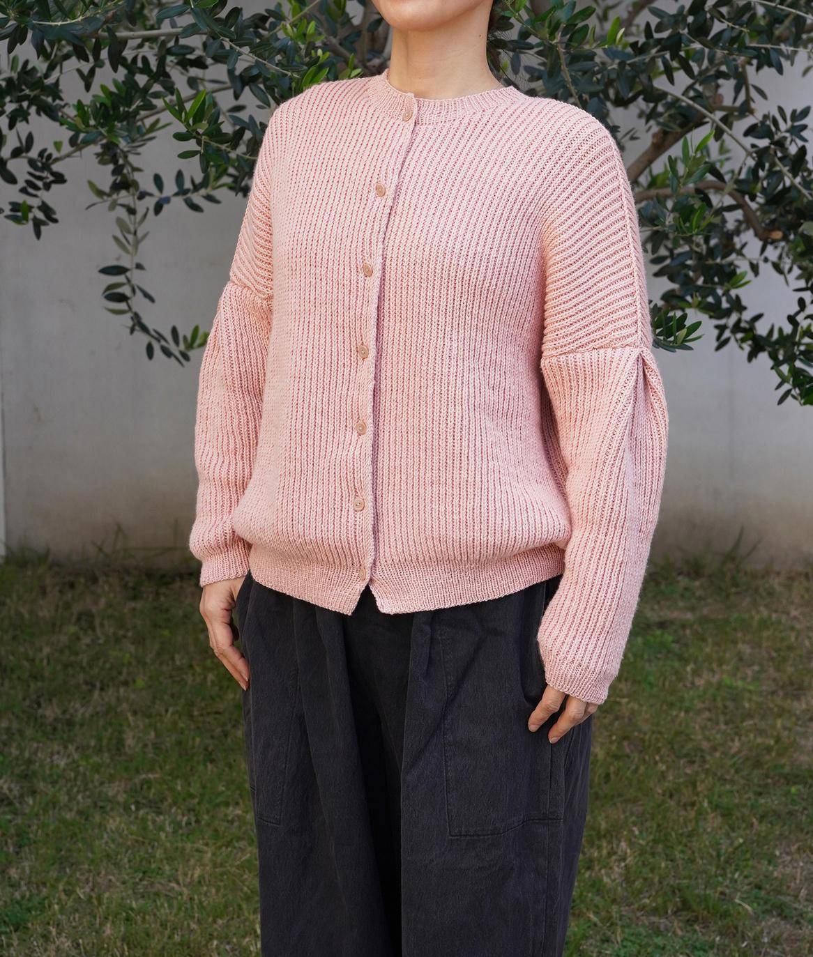使用「リネンウールアルパカ(亞麻羊毛羊駝)」編織的開襟衫,