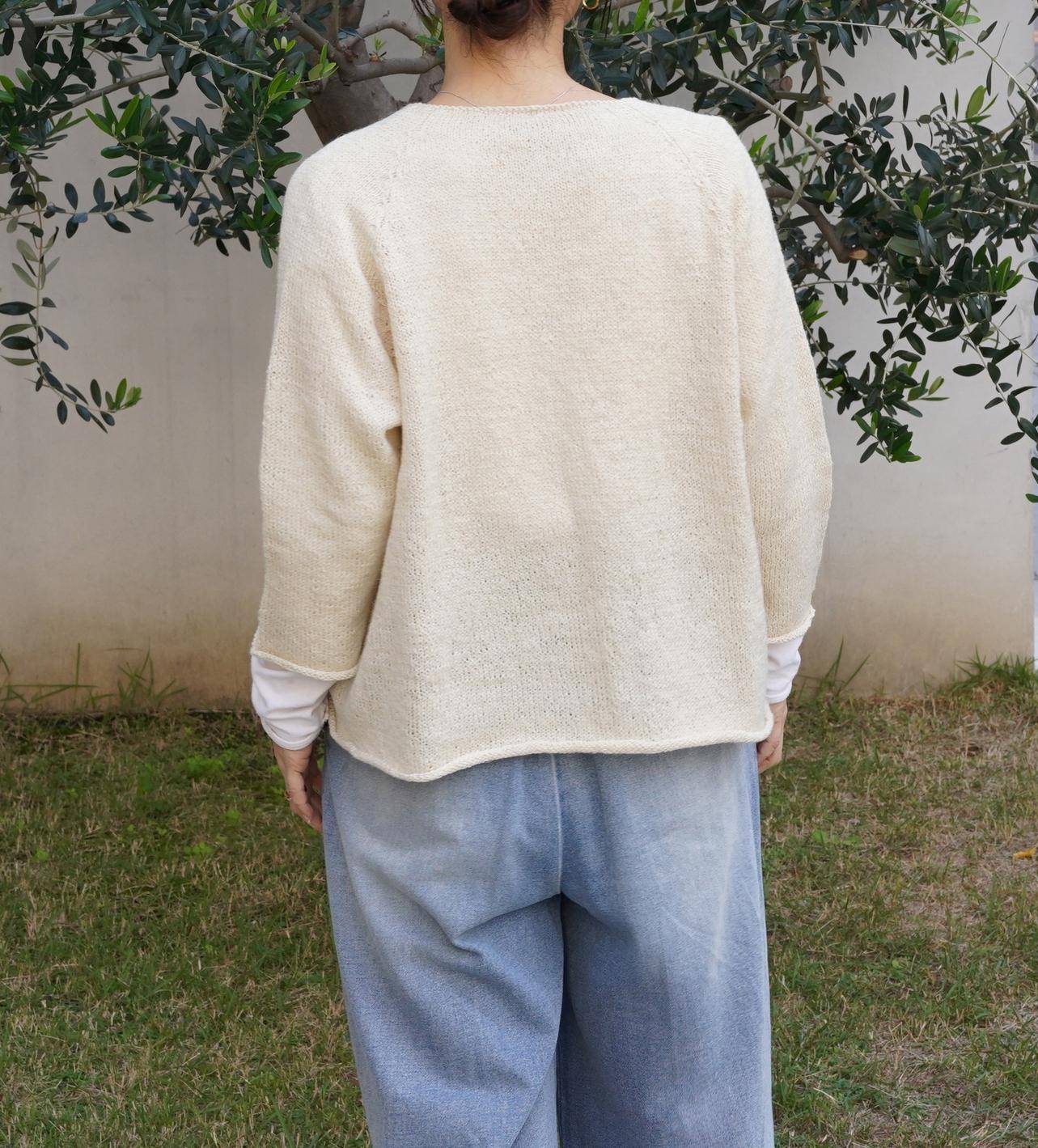 使用「リネンウールアルパカ(亞麻羊毛羊駝)」編織的開襟衫,